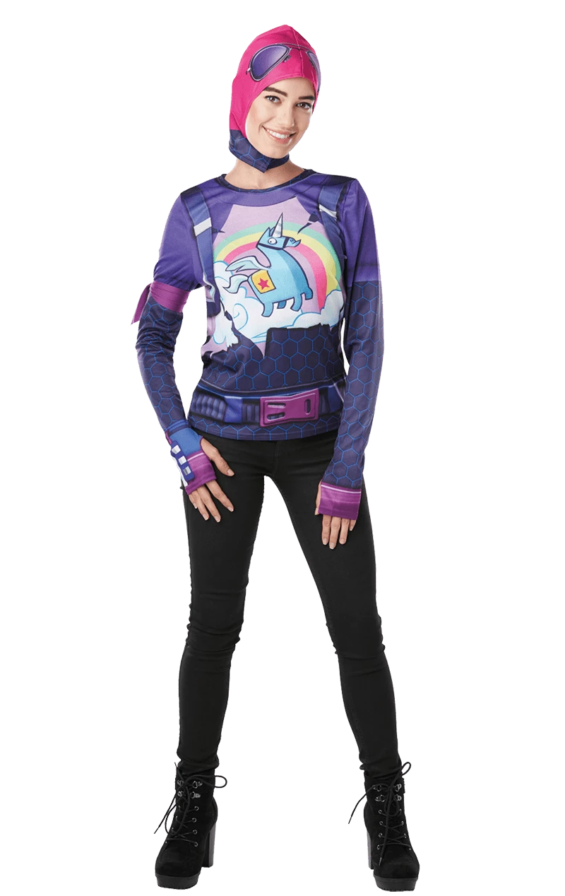 Finally you can become one of the favourite characters from the almighty Fortnite with our Adult Brite Bomber Fortnite Costume Whip on your top and snood, make sure that armband is tightened and head into battle. But quickly, the storm is closing in! Time to strengthen your hideout and wait for the stragglers to wonder over to your traps! Costume includes: Printed Shirt with Armband and Snood.