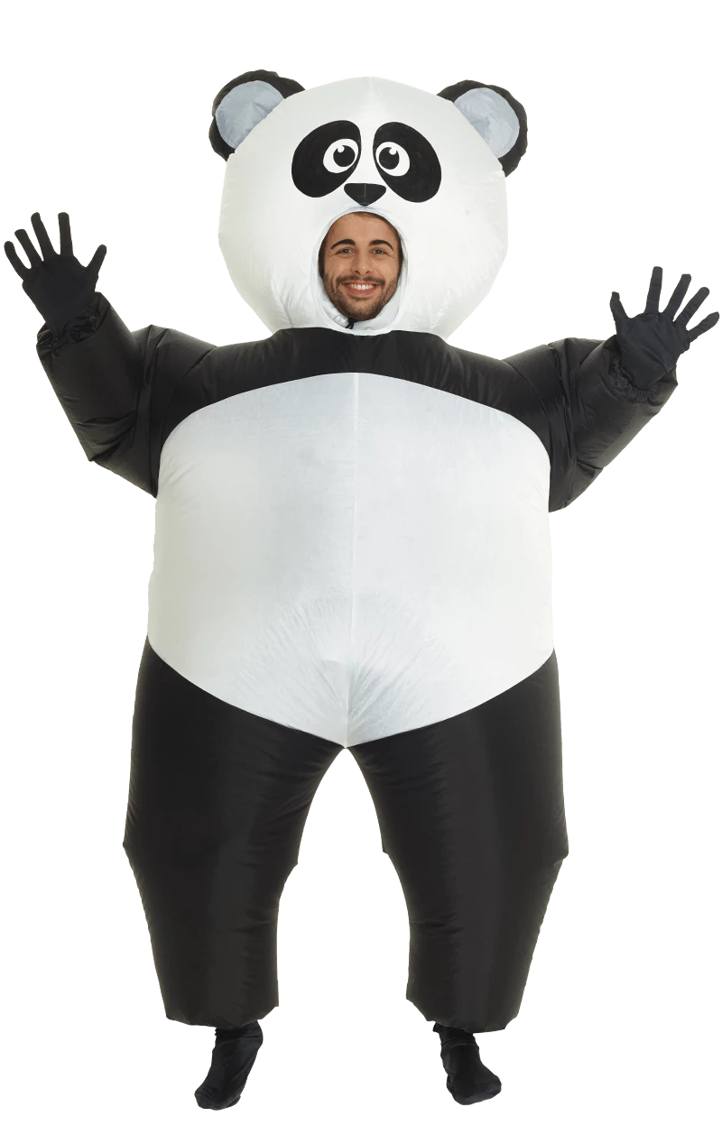 Stumble into the party in this Adult Giant Inflatable Panda costume. Turn heads and stand out in the crowd! The Giant Inflatable Panda costumes takes 4 AA batteries and stays inflated for 4 hours+.