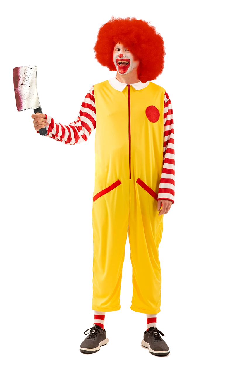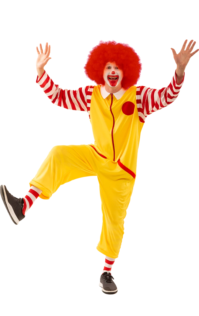 It’s everyone’s favourite clown! If you’re a burger fan or a chicken nuggets lover, the Adult Ronald Clown Costume is the perfect outfit for you! Jump into the shoes of this lovable but kind of creepy red-haired clown! Paint on a huge smile and dish out the nugget goodness to all! This outfit features striped socks and a zip-up onesie. It’s great for Stag Do’s, food-themed parties and even Halloween – just add a little blood for a scary Ronald Mcdonald Costume!