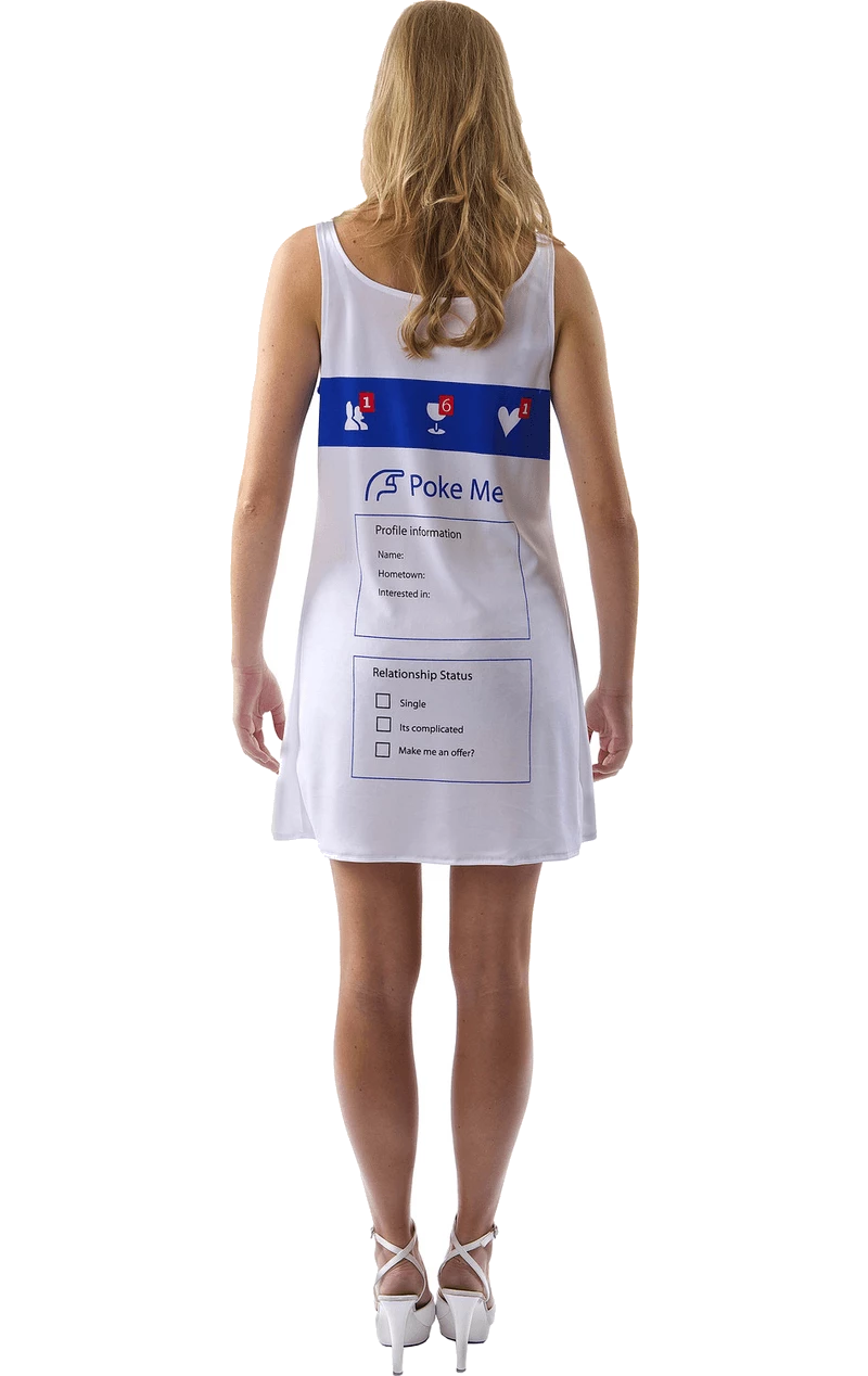 Rack up the amount of likes, shares and comments you get on this Adult Social Network Dress. Similar to the nation’s favourite app and website, this dress features your very own Facebook feed including a space to update a status, and on the reverse side it features your relationship status and a “Poke” design.