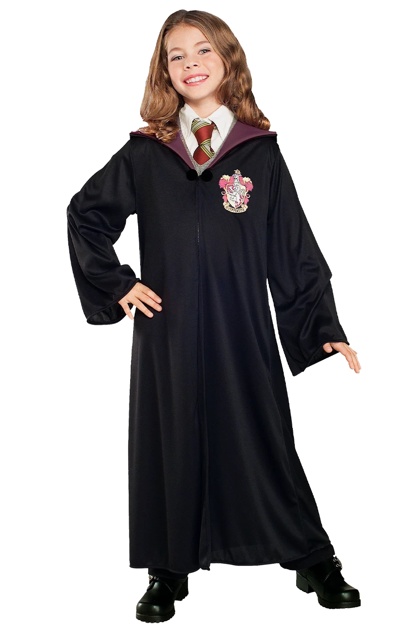 Bring the magical world of Harry Potter to life with our officially licensed Kids Hermione Granger Costume. This black and burgundy robe will turn any muggle into a fully-fledged wizard with just a flick of the wand. Practice your spells, enchant your classmates… just watch out for You Know Who!