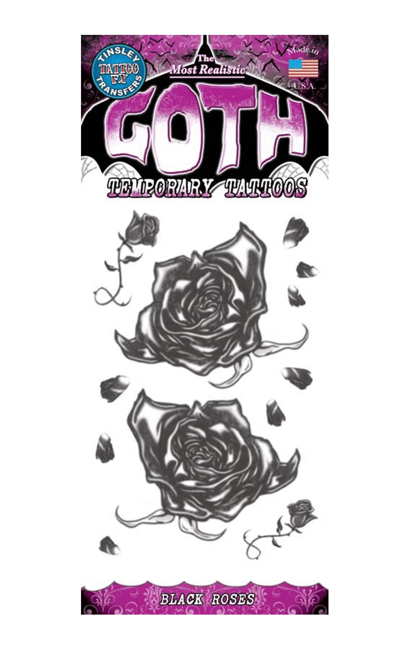 Get all of the gothic glamour without any of the pain with these beautiful and dark temporary Black Roses Goth Tattoos! You’re sure to look fantastically flowery with these designs as well as looking like you have a thorny side too…perfect! They apply easily to the face or body with water and will stay firmly on your skin all day and night.