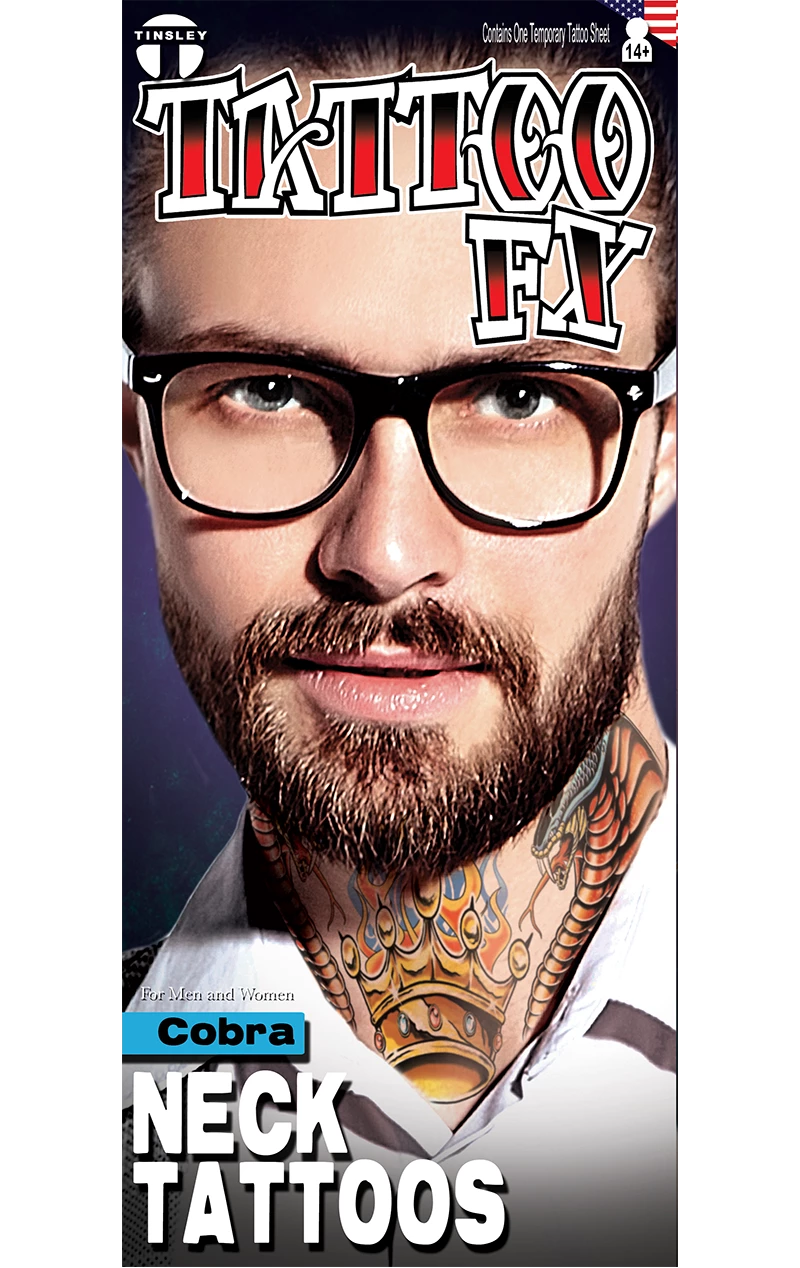 Whether you just want to test out if looking super cool will look good on you for the day, or you just aren’t ready to commit yet, the Cobra Neck Tattoo FX is the perfect in-between. This fake tattoo looks so realistic, people will think you were brave enough to face the ink! Great for Halloween, this tattoo would go with a voodoo king or witch doctor costume.