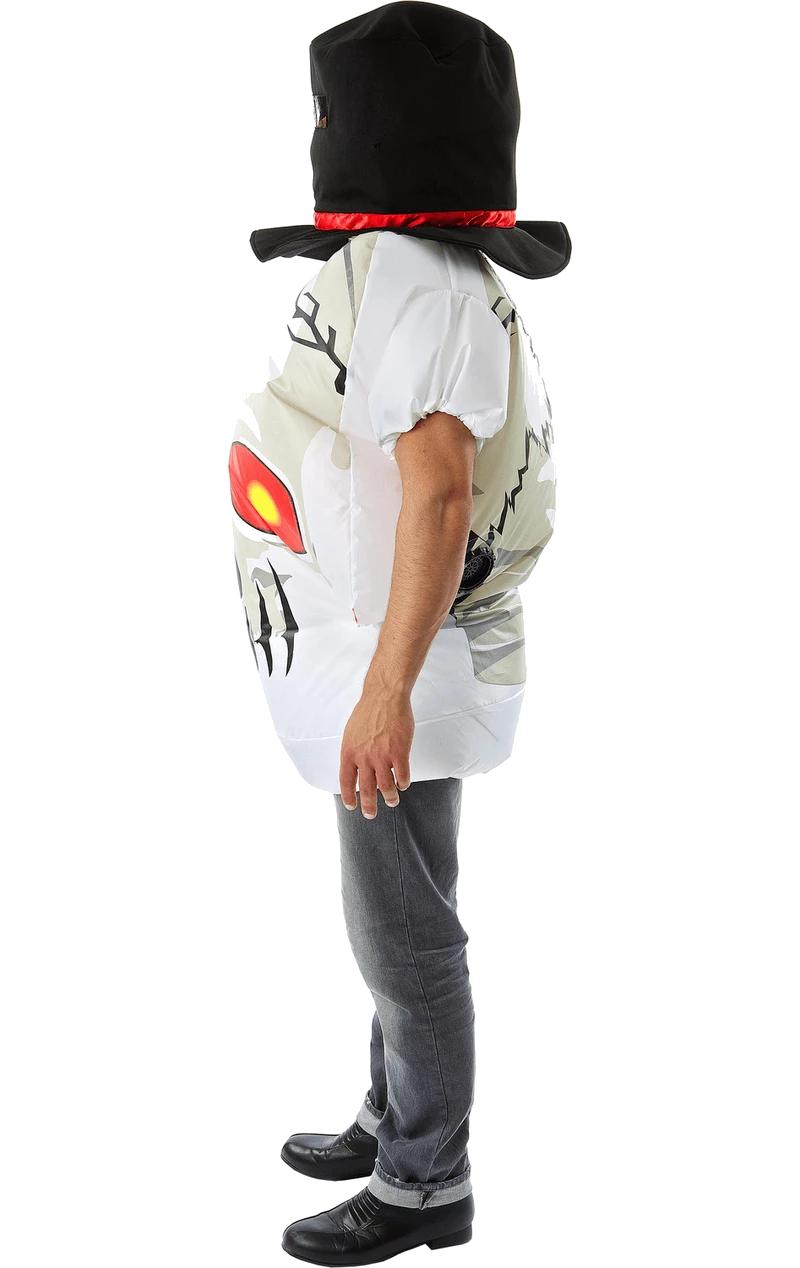 The Inflatable Skull Halloween Costume is made up of an inflatable, white skull shaped body suit. It features intricate black and grey detailing on the front to give an effective ghostly look, with red and yellow devilish eyes on the front, plus a creepy smile.