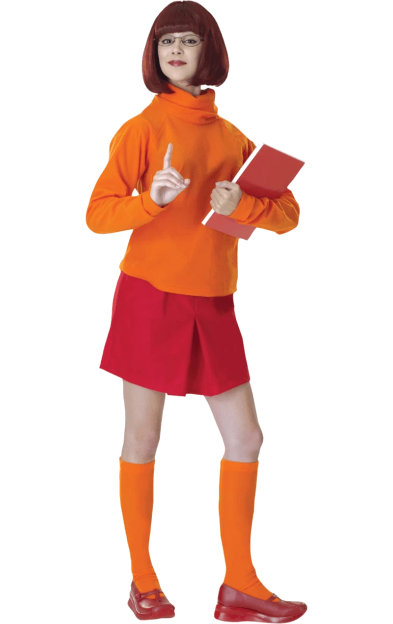 The Womens Scooby Doo Velma Costume comes complete with a bright orange, turtle neck jumper and a bright red mini skirt, giving off true office-wear vibes. Also included with the costume is a dark red bob wig and a pair of geeky glasses. You’re all set to solve that mystery – the whole gang is counting on you!
